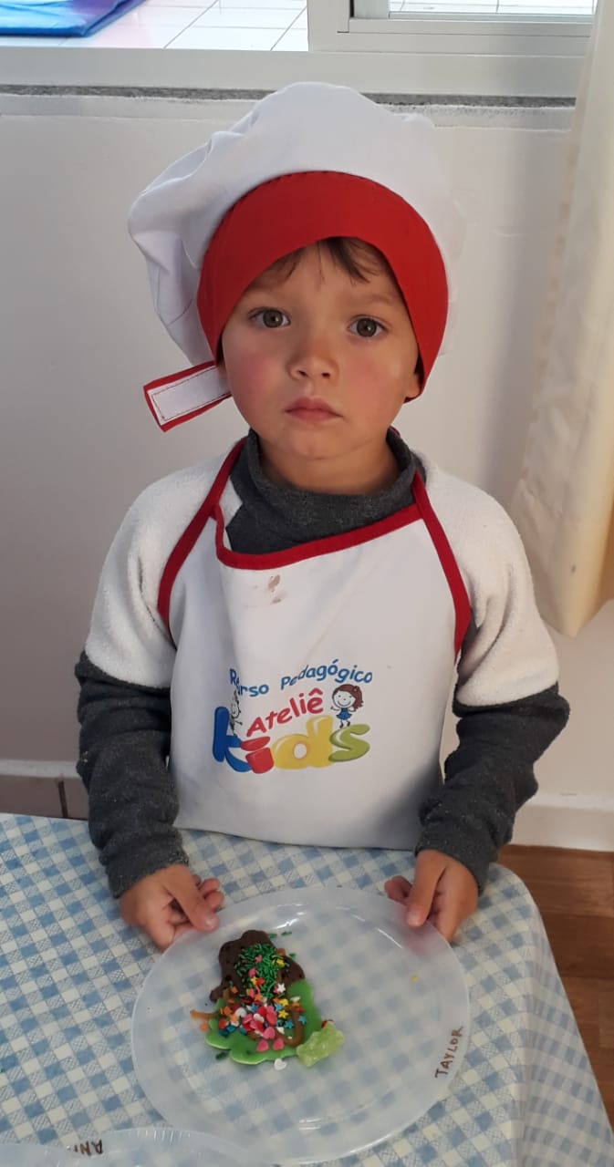Foi o que os alunos das turmas do Maternal II e do Pré I, realizaram, acompanhados das professoras e auxiliares, preparando e confeitando suas panquecas coloridas.
